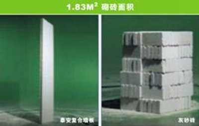 泰安复合墙板质量轻、其容重为700~750kg/m3,75mm厚墙板的重量为57kg/m2,仅为120mm砌体+两面抹灰墙体重量的1/3~1/5。如果一建筑物从基础结构设计上就开始考虑使用