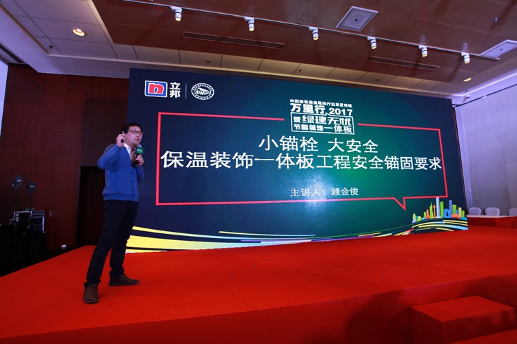 在“保温装饰一体化技术应用中的安全性原则和保温装饰一体板工程安全锚固要求”的主题演讲中,来自洛科威(中国)的标准与技术专家吕大鹏先生,以及慧鱼锚固系统(中国)的资深技术销售代表顾金俊先生,分别就保温装饰一体版技术应用安全性原则及锚栓安全性能等方面内容展开深度介绍。