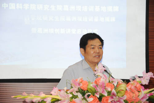 在这天上午的培训基地揭牌暨创新讲堂启动仪式上,葛洲坝集团公司党委书记、集团股份公司总经理丁焰章和中国科学院党组副书记郭传杰、中国科学院研究生院党委副书记苗建明先后发表热情洋溢的讲话。