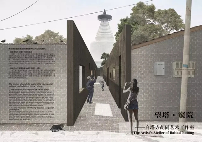 The wall-the artist's atelier of Baitasi hutong seems a clear reinterpretation of the urban structure of Baitasi by creating a ‘way’ to White Pagoda, that can be extended as pedestrian itinerary in the old town. Proposed program introducing studio type of space can attract new economic activities into the sector. Space may be used in many different ways and can be adapted along the time.
