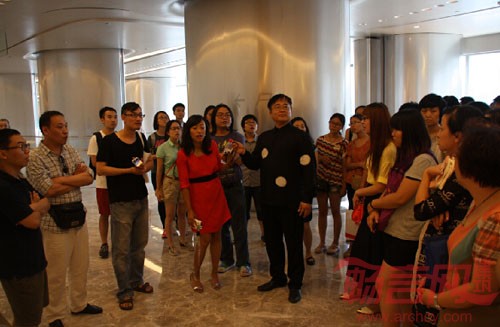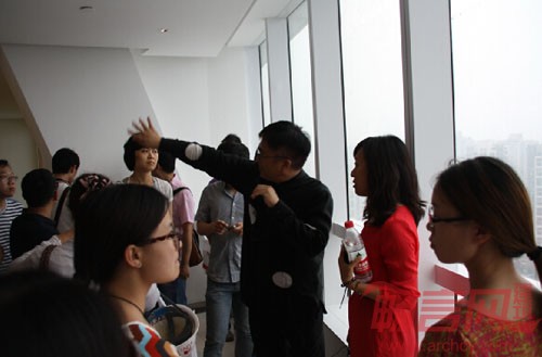 讲座之后,扎哈·哈迪德事务所的两位项目负责人带领到场嘉宾对建筑整体以及各个局部空间进行了专业的参观,并为大家做了专业的讲解。参观过程中,两位设计师不仅对设计细节、技术问题进行重点介绍,同时对嘉宾们提出的技术难点、造价成本、参数化设计、机电设备等方面的问题给予详细解答。每参观到一处都要驻足多时,从而也使得整个项目参观环节持续了两个多小时之久。大家在亲身感受项目设计细节之后,纷纷表示不虚此行,收获颇丰。