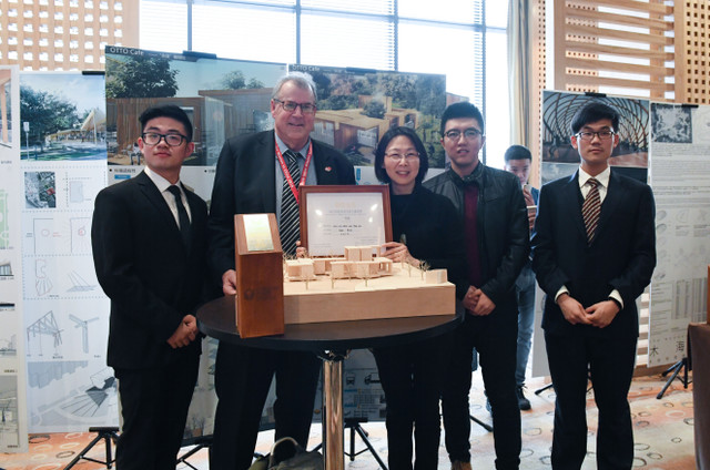 中、加政府都十分关心绿色木结构建筑在中国的发展,尤其关心中国对木结构专业人才的培养。决赛当天加拿大不列颠哥伦比亚省林业、土地及自然资源厅厅长Steve Thomson先生,加拿大驻上海总领事Weldon Epp,加拿大木业协会执行董事保罗纽曼(PaulNewman)为活动致辞、同济大学何敏娟教授介绍了竞赛情况。来自中国八所高校并学习木结构设计课程的学生参加了本次设计竞赛,学生们将在校所学基础知识应用于实际木结构项目设计中,学生们在木结构设计方面表现出浓厚的兴趣,有望填补中国木结构设计人才的缺口。