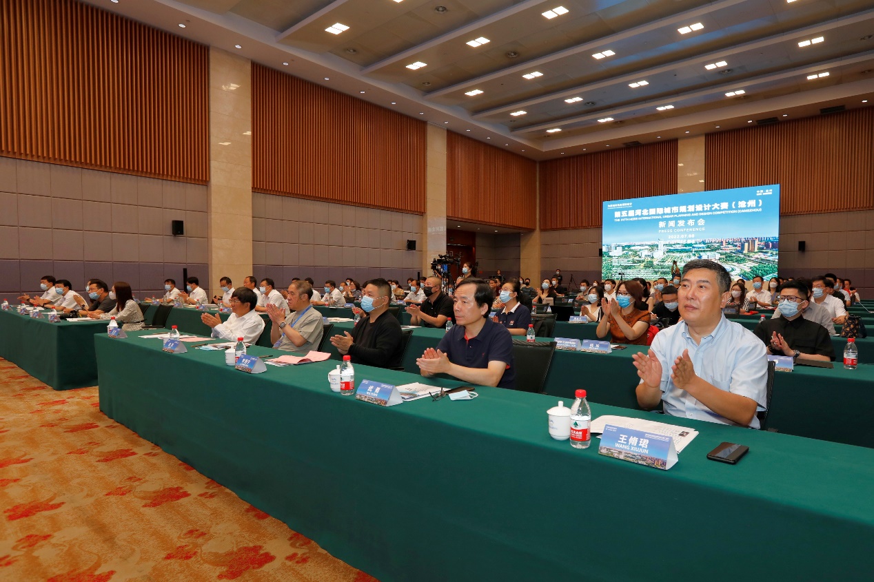河北省住房和城乡建设厅、河北省自然资源厅、沧州市委市政府领导,参赛团队代表,技术顾问,沧州市相关市直单位及区县政府主要负责同志等100余人出席了新闻发布会。近30家中央、省、市和专业媒体参会报道,新闻发布会全程在线直播。