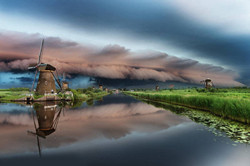 2016年8月4日报道,德国21岁学生Jonas Piontek和同伴在荷兰金德代克拍摄了一组难得一见的滩云奇观,照片中,厚厚的滩云积压在风车上方,在当地田园风光的映衬下,晦暗阴沉的云层稍显柔和,反倒形成了梦幻绚丽的奇景,据Jonas表示,为拍摄这组照片,他和同伴冒险等了整整一晚。
