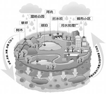 “海绵城市”是指城市能够像海绵一样,在适应环境变化和应对自然灾害等方面具有良好的“弹性”,下雨时吸水、蓄水、渗水、净水,干旱时将蓄存的水“释放”并加以利用。