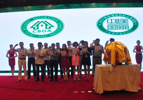 中国建筑装饰协会副秘书长刘原在2014绿色装饰材料“美丽中国”行公益活动启动仪式上,带领20家绿色装饰材料生产商代表绿色装饰材料生产商上台宣誓“绿色宣言”,表示不生产、不销售、不使用有害,超标的建筑装饰材料,倡导绿色环保材料,共同捍卫我们的绿色家园。