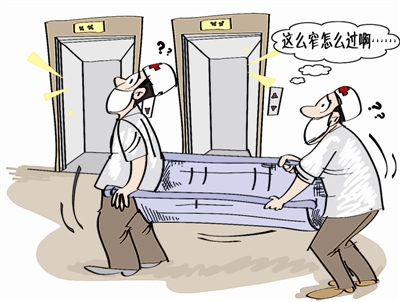 成都不少医院的急救人员接到来自电梯小区的急救电话时,心头常常涌出的一个担忧是:“不知道担架进得了电梯不。”
