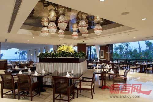 设计师最初的构想,便是到将最新的国际度假酒店设计风潮融入当地民风民俗之中。客房及套房的设计上,酒店家具选取意大利现代风格,集功能性、艺术性、简约性三为一体,饰以中式藤编、木质镂空;以岭南养蜂文化为根基,蜂窝造型台灯壁灯,一派中西浑然天成。客房及套间均设有景观阳台,让人尽情饱览秀美的山色海景。六个风格各异的特色中西餐厅和时尚酒吧满足食客饕餮的欲望。