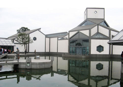 苏州博物馆新馆,既不大也不高,大门向内微凹显得十分谦和,很有几分平易近人的亲切感。“大门的处理很重要,它既要有气派,又要有邀人入内的感觉。”贝聿铭认为,“我记忆中的许多所谓深宅大院,包括我儿时玩耍的狮子林,大多是高墙相围,朱门紧闭。而博物馆是公共建筑,我想在这里用一些新的设计手法,让博物馆更开放一点,更吸引人。同时,游客一进大门就应感受到堂堂苏州博物馆的气派。”