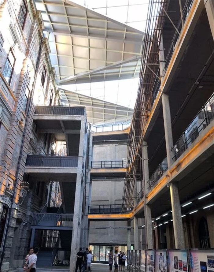“武汉平和打包厂”是一个比较成功的历史建筑保护与改造的案例。我们做设计的时候重点对它的历史及现状进行调研,从它原来建筑的外观、结构形式、建筑外貌以及建筑内部有历史价值的信息收集,以及它当时作为重要的工业基地最先进的建造技术,包括钢梁、消防设备、市政设备,以及带有工业建筑典型特征的滑道等,我们都进行了信息记录与实体保护。