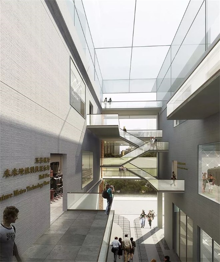 作为建筑师,我们必须要从业主的角度考虑,但也不是完全这样。因为建筑师还有一个社会责任,除了经济效益,社会责任也很重要,这是一个平衡,既能够让它的经济效益得到最大的发挥,同时也要站在规划者、政府、老百姓的角度去思考,所以有些公共空间是要开放的。地铁博物馆方案里面有一个沿街的骑楼,是从街面到博物馆的过渡的空间,原来它是仓库,里面的空间是封闭的,我们通过横向的空间把它打通,这样街面人群就跟里面的博物馆里面的园林、庭院互动,对经营者来说是有好处的。