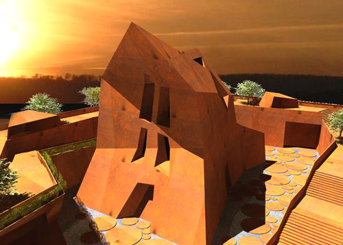 在对瓦伦蒂尼进一步了解后发现,他运用耐候钢来设计建筑也并非初次。早在2003年,瓦伦蒂尼便选择耐候钢作为建筑材料,设计了卢森堡市馈赠与德国特里尔市的建筑――“塔的梦想和憧憬”(Tower of Dreams and Longings)。这是一座非常新奇的建筑物。当时,这被誉为“大胆选择的一种姿态”,之后,溢美之词不绝于耳。建筑被视为一座里程碑,不仅仅是建筑雕塑,其本身也成为了艺术品。瓦伦蒂尼个人意见则是“材质的选择体现了建筑本身与自然的亲和力”。