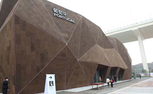 葡萄牙馆拥有一个以软木建成的外立墙,软木是一种具有葡萄牙特色的材料,不仅环保而且可以回收。选取这个有创意的环保范例,旨在在世博会上推广葡萄牙的形象。此外,展馆不仅展示了现代城市中可持续发展的概念,也强调此概念在葡萄牙经济和环境政策中扮演的重要角色。