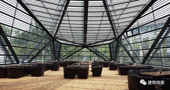 建筑体量随玉皇伸展,层层跌向西子,起伏之间,建筑、景色一体矣。屋顶之黑,墙体之白,坡顶多面穿插,似与不似间,江南气韵尽显。钢构架、中空夹胶玻璃、石材之运用,屋顶椎体穿插水平体块,建筑现代感与雕塑感陡然而增,时代之美尽显。