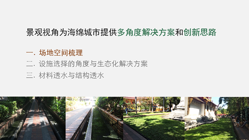 以上简单提及了海绵技术方法与景观设计方法的不同之处。接下来和大家分享一些在以往工作当中遇到的问题和经验总结。主要分为5个部分:上位规划衔接、现场勘察与场地分析、设计原则与目标、设计方案与设施选择、施工图完成与现场配合。