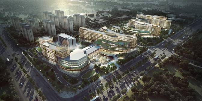 项目除了包括综合医院、康复医院、妇产科医院、儿童医院及月子中心,更设有一系列多元化的社区功能设施。