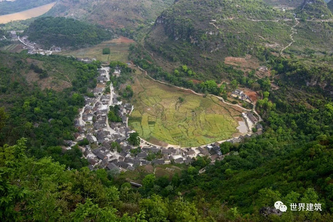 雨补鲁村处于典型的喀斯特地貌峰林区域,村庄的周围群山环抱,数百年来,村寨沿着山脚不适合种植的缓坡地带选址建设,中间大片平坦的土地则留作耕种的粮田,从高空俯视,整个村庄仿佛是存在于巍峨山体间的巨大天坑,村落布局特点充分体现了先民在家园选址建设方面的智慧。雨补鲁村能够发展至今的另一个重要因素就是它能为居民提供很好的生存条件,源源不断的山间泉水和自然形成的落水洞为居民提供了天然的给排水系统,也对村落结构的形成产生影响。