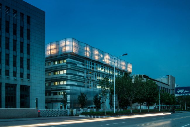 中建新塘展示中心体现了对适宜性技术的充分考量,其中伴随天友对地域性的气候资源、生活习惯、建造方式、本地建材等因素的综合考虑,最终合理制定了节能技术体系并综合利用本地建材。具体来说,在项目的实际操作过程中,天友针对天津地区气候特征,创新出双层通风表皮系统,其中东、西、南侧外墙不做密封板措施,主要为带走热量,减少夏季空调能耗;北侧外墙做密封板措施,以此增加空气层,提升保温性能,侧面则均采用镀锌铁板密封。另一个适宜技术重点主要是针对天津地区建筑南面及东西面不同的受光特性,采用多种遮阳相结合的方式,表现为:东、南立面为阻碍夏季太阳直射光,并争取获得冬季太阳辐射光,故此采用电动推拉式金属遮阳形式;建筑西立面为避免夏季西晒,采用电动旋转式机翼遮阳系统。