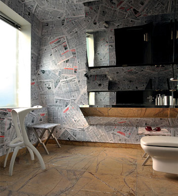 法文报纸拼贴的卫生间,是为来者贴心的考虑,还是设计师的一次童心之旅?