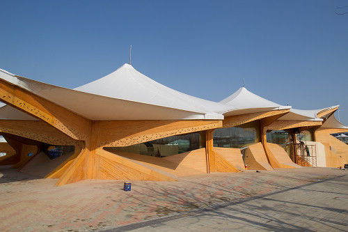 阿联酋馆,被称为沙丘,是一座真正可循环利用的世博会展馆,世博结束后,展馆将被拆卸运回阿联酋并在当地重新建造。成为阿联酋文化中心。