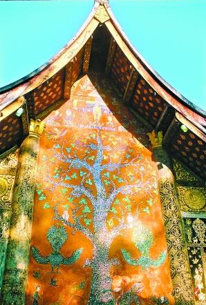 香通寺是琅勃拉邦内历史最悠久、也是最大的寺庙,它以其构筑别致、精美的雕刻和华丽的镶嵌闻名于世。香通寺主建筑侧面看几乎只有陡峭的屋顶,占了总面积4/5,然而转到窄幅的正面,就会被精致的浮雕壁画所吸引。