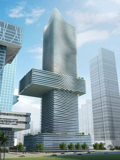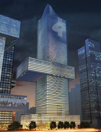 Coop Himmelblau设计的最新的“中国金融总局”将成为深圳中心地区的经济、金融核心,它的也将以其独特的傲人身姿成为这个城市极具代表 性的建筑,雄然屹立。