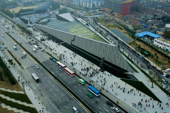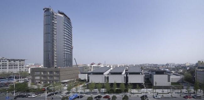 ▼中国(泰州)科学发展观展示中心,以石材替代传统建筑中的木材和砖瓦,保留建筑形态的精神
