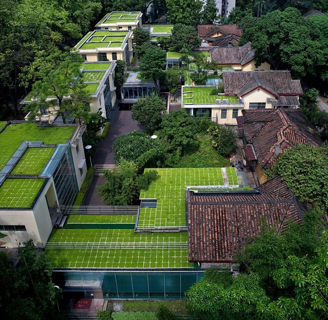 ▼澳门大学横琴校区,体现岭南地区的气候和文化特征