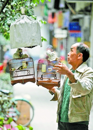 福地巷内,街坊正在悠闲地遛鸟(图片来源:广州日报)