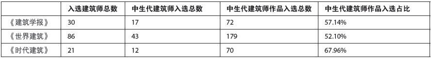 表1. “中生代建筑师”入选2015—2019年建筑期刊统计表