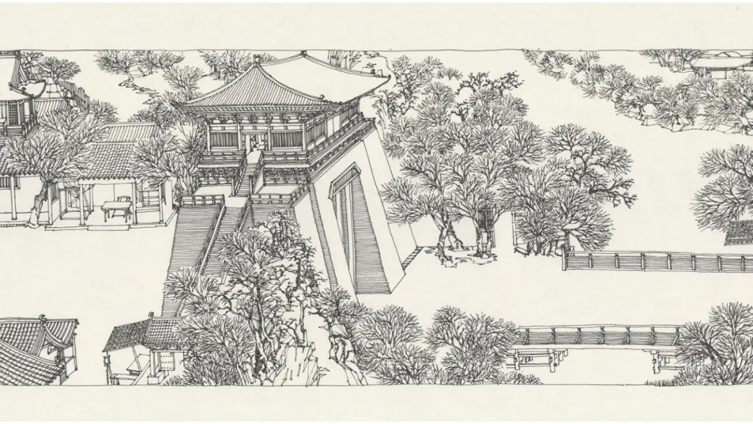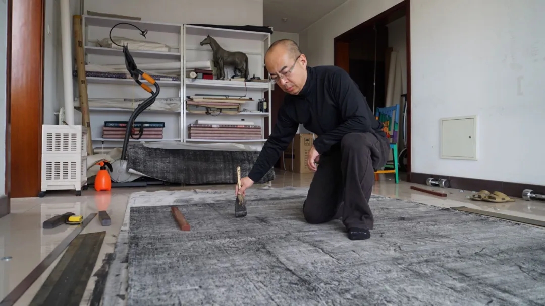 当代水墨是一个浩瀚的范畴,从传统水墨到写意到当代水墨,有许多成功的艺术家,但我和他们走了一条不同的路。我对水墨的探索,实际上是一个对传统水墨、对传统的绘画有一些功底的建筑师,在现代语言的表达上做了一定的尝试,并取得了一个阶段性的成果。在水墨探索里面,我借用了书法的运笔速度、运笔提按的方法,也包括一些中国传统建筑绘画里“界尺画”的办法,在生宣纸上进行书写。当笔锋越细的时候,水墨的表达方式上呈现出的不仅是笔和墨的关系,纸的质地和纹路以及纸下面毡子的一些质感,都会在纸上呈现出来。