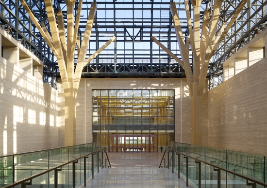 以河北博物院项目为例,设计过程中发现拟建新馆与现有馆舍规模近似,形成主次难分的二元对立状态,难以通过体量和立面处理加以解决。关肇邺先生创造性地提出突破投标任务书要求,在新旧两馆之间插入一个中心控制性体量。最终我们设计了一个40米见方的玻璃体中央大厅来统领全局,将新、旧两个各具鲜明时代特色的馆舍合二为一,在城市尺度上确立起整合的博物馆建筑群文化地标。如此打破常规的设计决策,正源于我们对于“和谐”的一贯追求。尽管在形式方面并未运用中国视觉元素,但最终建成环境所体现出的和谐统一的氛围,是与中国传统文化的价值观相一致的。
