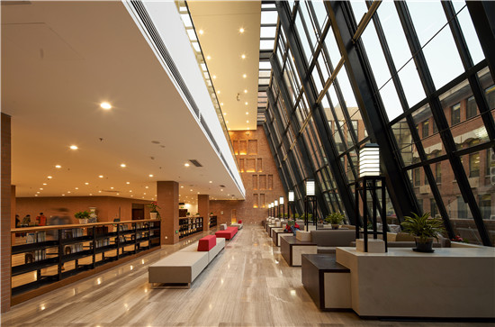 【韩孟臻】印象最深的应该是清华大学图书馆北馆项目。该项目从2002年开始设计,2016年建成,在关肇邺先生领导下设计团队的思想理念得到了充分的贯彻。清华大学图书馆始建于1919年,历经两期扩建,是我国建筑史上文脉主义的代表作品。作为第四期扩建,北馆选址于建筑群最北部,严格控制的建筑体量与高度,避免了对一、二期建筑,以及其他校园历史建筑的压力。
