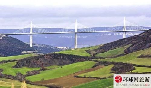 不同于欧洲中世纪的砖石桥梁,米洛大桥是一座地地道道的钢索结构的斜拉吊桥,堪与美国的金门大桥相媲美。