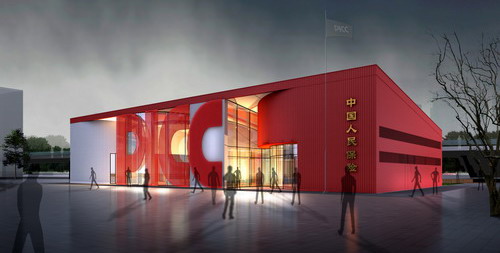 作为设计室主任,陈培东联络了一个包括他自己在内的团队作为徒弟的后盾。设计院领导陈文莱亲任设计负责人。两个月过去了,中国人保馆动土了,他们的设计图也已经成型。这是一个单层的红色展馆,位于一片绿草之上。