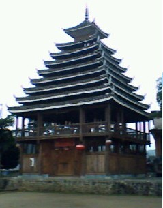 侗族寨子里必有鼓楼。侗民有“未建寨先建鼓楼”之说。寨中的各种活动如联欢议事、制定村规、迎送宾客、婚丧嫁娶等事都在鼓楼中进行。它是侗寨社区中心,是寨子里最复杂、最讲究的建筑。鼓楼的层数必为奇数,因为侗族先民认为奇数为阳数,寓意吉祥。而楼体必为四边形、六边形或八边形,偶数为阴,阴阳平衡,象征子孙兴旺。