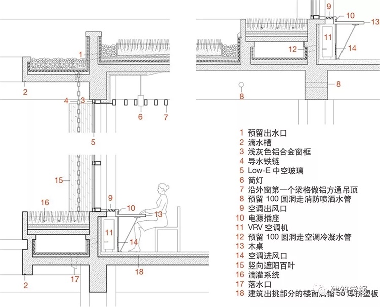 ▲ 11 江苏职技图书馆外墙剖面绿色建筑设计图示