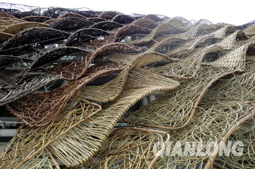 覆盖西班牙馆的8,524片藤条全部是由山东省工业城市勃兴手工制作