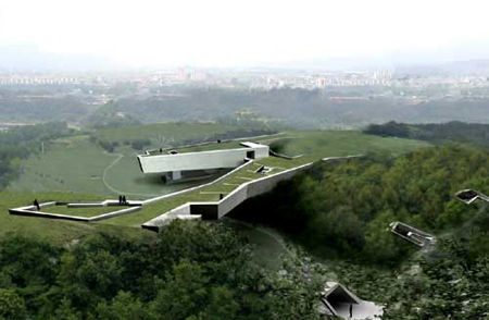 这个考古博物馆跨越在一个数千万年的化石岩山上,每一个观光入口处在于不同年代的化石层面,把漫游博物馆的旅程提升为穿越时光的经验。