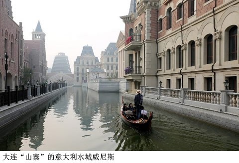 2015年10月16日,大连“山寨”的威尼斯开闸放水。该项目投资50亿元,由法国团队设计,占地40万平方米,规划建筑面积18万平方米,将海水引入4公里的人工河渠中,以保持“欧洲水城精神” 。