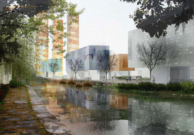 两个项目之一的“杭州国际旅游综合设施”(Hangzhou International Tourism Complex,),正在进一步设计。这个项目的场地的形状像蝴蝶领结,有一些生产锅炉和氧气瓶的工厂。计划在这块位于运河边的60英亩的土地上,建造公寓楼、商店和办公楼。