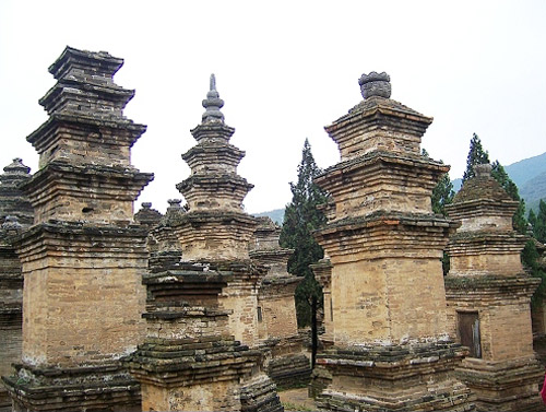 少林寺塔林,是唐朝以来少林寺历代住持僧的葬地,共有佛塔250余座(资料照片摄于2009年2月新华社)