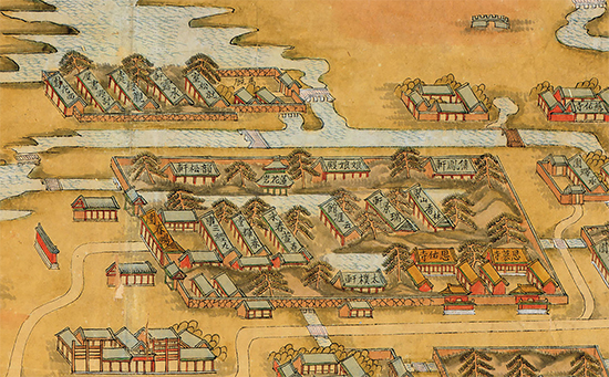 总体来看,清代“三山五园”主要包含了三个层次:首先是由多座皇家园林和私家园林所组成的园林核心区,其中的园林类型既包含了圆明园等多尺度的人工山水园林,清漪园等大中型自然山水园林,也包含了静宜园等多尺度的自然山地园林,其景观类型丰富多样、层出不穷,在海淀一带连绵不断、蔚为壮观,可谓真正意义上的“万园之园”。其次是各园林之间穿插的中间过渡区,该地区在空间上占据了“三山五园”的大部分土地,包含了水利、农业、居住、商业、宗教等多种功能的聚落,为皇室的园居生活源源不断地提供物质上的支持,其景观风貌主要依托于海淀土壤肥沃、水源充沛、气候适宜等得天独厚的地理条件以及古代劳动人民适度改造自然的生态智慧,主要体现为华北地区难得一见的江南水乡风光。再次是由圆明园护卫营、健锐营和外火器营这八旗“外三营”所组成的军事防御区,它主要分布在“三山五园”的外围,驻扎有大量的清军精锐部队以保卫皇家园林的安全,同时是重要的军事演习基地,在景观上主要体现为模拟战场、依山而建的碉楼以及军营、团城等形式。