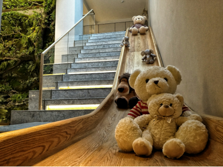 在适幼方面,充分尊重幼儿的天分和天性,以“生活独立性”和“无障碍设计”为方向,打造了林间儿童乐园,将儿童活动与树林、坡地景观相结合,夏遮骄阳、冬挡寒风。通过自然坡地地形的变换、树林光影的变幻,结合儿童设施的拓展嬉戏,激发儿童的观察力、想象力和创造力。