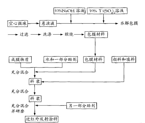 图1 二氧化钛包覆空心玻璃微珠配制红外反射涂料工艺