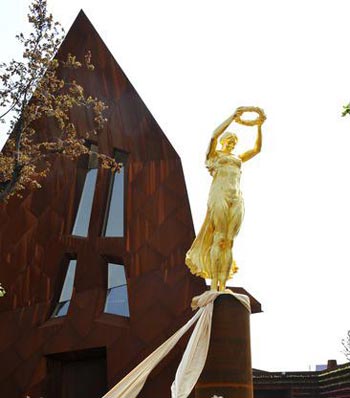 闪耀着金光的金色女子像---卢森堡的国家艺术瑰宝,在2010上海世博会卢森堡馆前揭开了神秘的面纱。