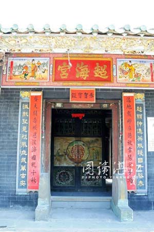 超海宫位于雷州市附城镇夏岚村东边,始建于明代,全部为砖、石、木结构古建筑,四进三道门四合院式布局,占地面654.9平方米。有山门、拜亭、正殿、后殿、东西庑、三天井庭院等宫舍20余间,据清乾隆三十年(公元1765年)“天妃超海宫管业碑”记载:“明正德年间(公元1506—1521年),经郡守袁、刘二位将近庙海田、海埠、桩门带港五条拔入庙作为香灯”。该宫虽经多次修葺,山门拜亭、正殿至今仍然是同治年重修清建筑风格,目前主体建筑结构完好,文物保护完善。
