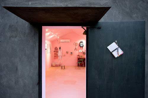 在汶川地震一周年之际,刘家琨建造了一个“胡慧珊纪念馆”,胡慧珊是汶川地震中丧身的一个再普通不过的小女孩儿。刘家琨为这个小女孩儿建造了一个纪念馆。纪念馆以灾区最常见的坡顶救灾帐篷作为原型,采用框架结构及再生砖建造,表面以施以乡村最常见的抹灰,室内采用红砖铺地。室内满眼的粉色,粉色是胡慧珊生前最喜欢的颜色,墙上挂着她留下的少许遗物 书包、照片、羽毛球拍、笔记本、几件衣服