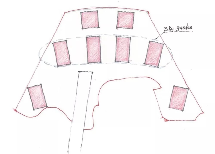 笔者基于重庆来福士广场勾勒的“天空城镇”草图