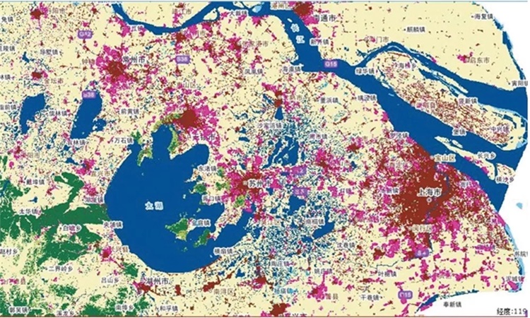 向农村扩张——上海及太湖地区城市扩张一览图(红色部分为2010年之后)